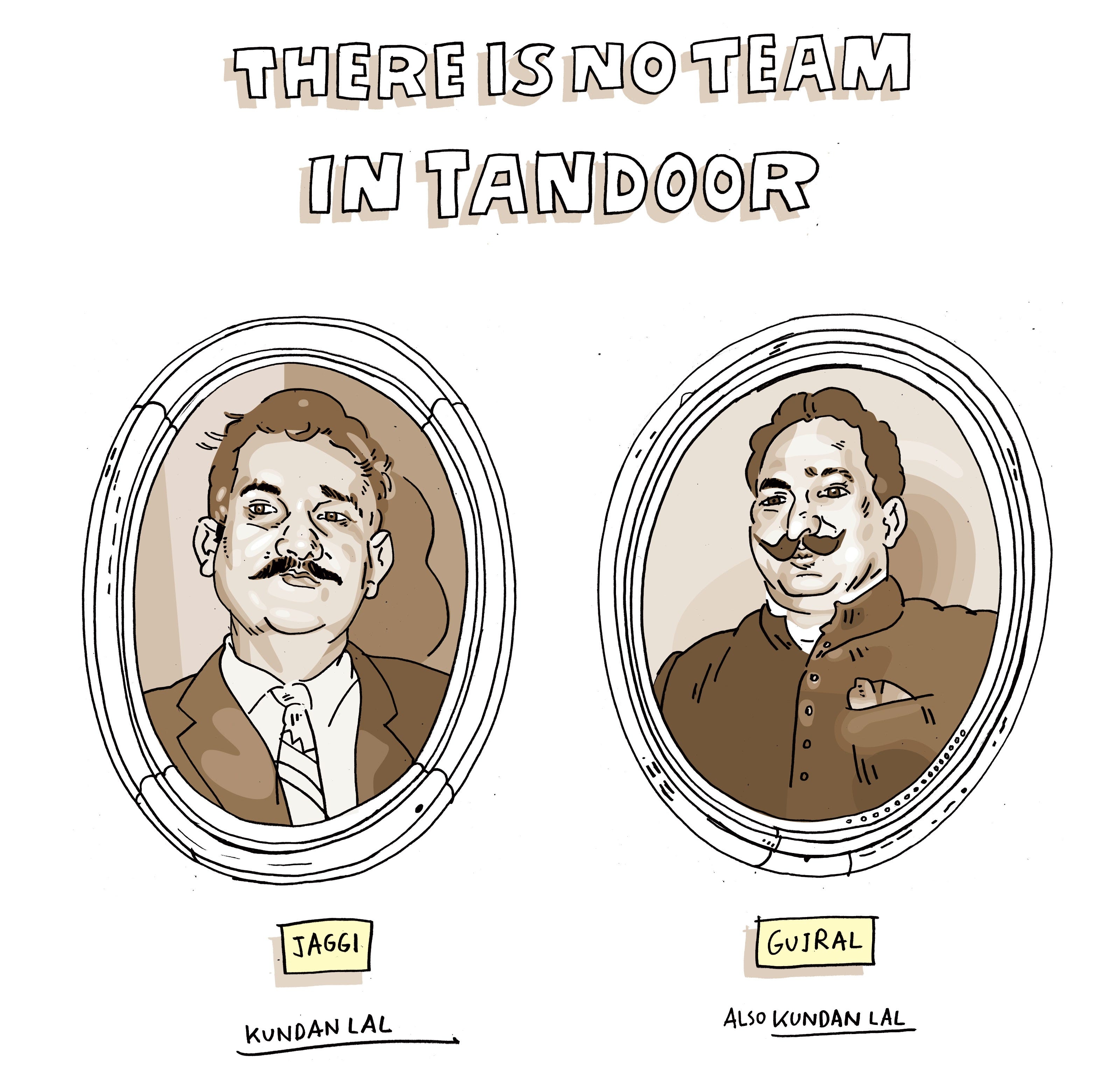 The most fun I had, though, was drawing the two Kundan Lals with their handsome moustaches. While working on these drawings I had to think of the endpapers in the Tintin comics, which present the framed portraits of the most prominent characters Tintin encounters on his adventures. Happy memories!